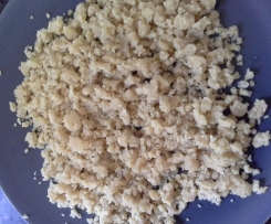 "Linkslauf" Stufe 3,5 vermengen. Auf einen großen Teller "stürzen" und leicht zerbröseln. Die trocknen noch während der weiteren Zubereitung und werden prima Streusel.