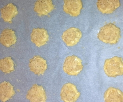 Mit einem Teelöffel ca 30-35 Häufchen mit Abstand auf zwei Backbleche geben, etwas "rund modellieren", bzw. festdrücken.