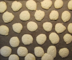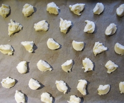 Mit zwei Teelöffeln kleine Häufchen auf die Bleche setzen (sie sollten alle in etwas die gleiche Größe haben). Dazwischen mindestens 3-4 Zentimeter Abstand lassen, da die Plätzchen zerlaufen.