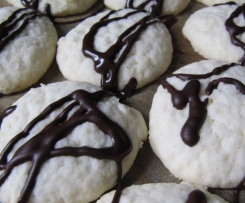 Das Rezept ist von meiner Schwiegermutter, die es vor rund 60 Jahren an der Hauswirtschaftsschule bekommen hat. Im Originalrezept werden 250 g Zucker verwendet. Wir mögen es aber nicht so süß. Diese Kekse sind recht mürbe und schmecken lecker zum Cappucino