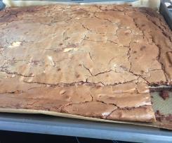 Nun das Mehl dazugeben und 45 Sek./Stufe 4 alles verrühren, sodass ein glatter Teig entsteht. - 2/3 des Brownie- Teiges wird auf einem großen, mit Backpapier ausgelegten Backblech verteilt und 1/3 des Teiges wird in eine Schüssel für später umgefüllt.