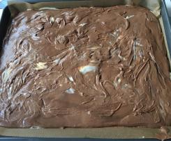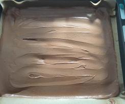 Dann die Frischkäsemasse über dem Brownie- Teig gleichmäßig verteilen. - Anschließend die zur Seite gestellte Browniemasse darauf verteilen.