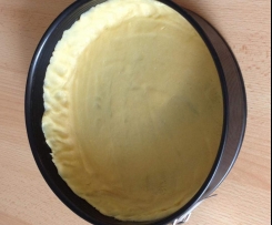 " Modus „Teig kneten“" zu einem Knetteig verarbeiten. Eine 26er Springform fetten, Knetteig hineingeben und den Springformboden damit auskleiden. Einen ca. 3 cm hohen Rand hochziehen und die Springform in den Kühlschrank stellen.