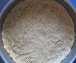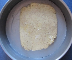 und mit einem ca. 2 cm hohen Rand hineindrücken. Mit einer Gabel mehrmals einstechen.