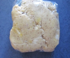 Den Teig in die Folie einwickeln und ca. 30 Minuten in den Kühlschrank legen.