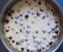 Die Kirschen und den Guss darin verteilen.