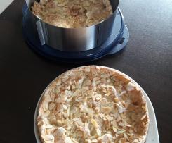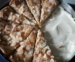 Die Hälfte des Eischnees auf den vorgebackenen Boden geben, mit 50g Mandelstifte bestreuen und 20 Minuten bei gleicher Hitze fertig backen. Mit dem 2. Boden ebenso verfahren.