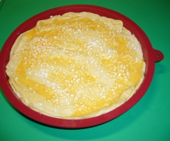 Nun eine kleine runde Kuchenform (24-26cm) damit auskleiden, mit 3cm hohen Rand.