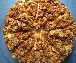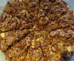 18.     Den vorbereiteten Knusperbelag etwas zerkleinern und auf dem ungebackenen Rührteig verteilen.