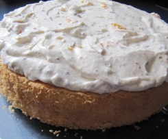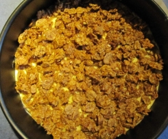 30.     Die Torte mindestens 1 Stunde kalt stellen und dann mit dem in Stücke geschnittenen Knusperboden belegen.