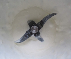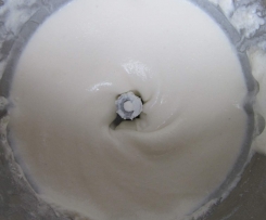 25.     Die Sahne in den Mixtopf geschlossen"Mixtopf geschlossen" geben und 1,5 Min. / St. 4 anschlagen. Die Sahne vom Mixtopfrand nach unten schieben.