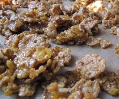 12.     Diese Knuspermasse auf einem Stück Backpapier verteilen und etwas erkalten lassen.