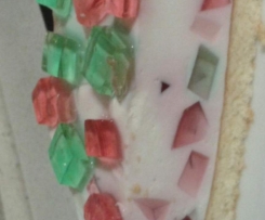 Zum Schluss den Tortenring entfernen und noch mit Götterspeisewürfel verzieren.