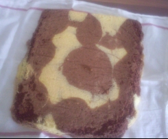 Abwechselnd den hellen und den dunklen Teig auf ein Backblech mit Backpapier drunter geben und Klekse machen. Danach mit einem Löffelstiel marmorieren.