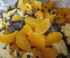 Mandarin-Orangen aus der Dose abtropfen lassen und mit Orangen-Finesse in Orangenlikör marinieren. 1/2 Biskuitboden zerbröseln, ca. ein knappes Drittel der Buttercreme und Schokoraspel mit den marinierten Mandarin-Orangen vermischen, bis eine cremige Trüffelmasse entstanden ist, zuletzt die Orangen-Aromapaste untermischen.