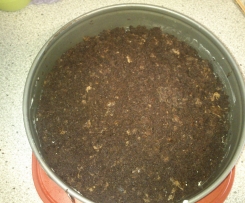1. Die butter in den Mixtopf geben und auf Stufe 3  10 Sek. verrühren. Vanillezucker und Zucker dazu geben und jedes Eigelb ca 30 sek. /Stufe 4 mit rühren. Mehl, Backpulver, Kakaopulver, Haselnüsse und Schokoraspeln mischen und danach 10 sek. / Stufe 3 unterrühren. Das geschlagene Eiweiß unterheben. Den Teig in eine eingefettete Springform (24-26cm) füllen und bei 180 Grad ca 30 Minuten backen. Den Kuchen 10 Minuten auskühlen lassen, aus der Form lösen und auf dem Kuchengitter erkalten lassen. Den erkalteten Boden mit einem Esslöffel aushöhlen, dass ein etwa 1-2 cm breiter Rand stehen bleibt. Die Gebäckreste in einer Schüssel grob zerbröseln.