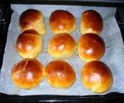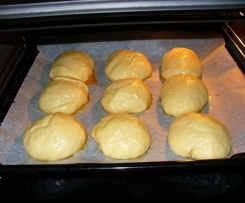 Meine sind auf die herkömmliche Weise leider nichts geworden. Der Teig war viel zu flüssig, trotz weiterer Mehl Zugabe konnte ich keine Brötchen formen. Ich habe den Teige dann alternativ in eine Muffinform gegossen und sie im Ofen aufgehen lassen. Anschließend weitere 20 Minuten im Ofen bei 200 grad gebacken. Geschmacklich waren die dann sehr lecker 😋
