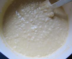 - Die Eier-Zucker-Creme zum Milchreis geben und mit einem Teigschaber vorsichtig vermischen. Der