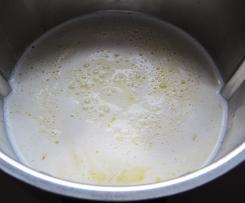 - Milch, Salz, Zitronenschale, Zucker und Butter in den