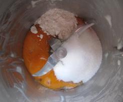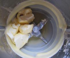 "Mixtopf geschlossen" wiegen und 1,5 Min. / 37 °C / St. 1 "erweichen". - Dann 1 Min. / St. 4 schaumig rühren und mit dem Spatel vom Rand nach unten schieben.