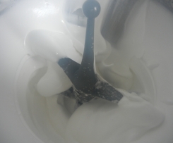 Eiweiß, Wasser und Salz 3 Min./50°C/Stufe 4 steif schlagen.