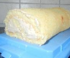 Aber das tat dem Geschmack absolut keinen Abbruch. Wir haben den Biskuit dann in Rollen geschnitten, zusammen mit dem ganzen Sahnezeug in eine Schüssel gepackt, im Kühlschrank durchziehen lassen, gestürzt und sind dann schier über das Ergebnis hergefallen. Schmeckt echt lecker!!