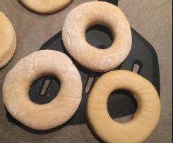 4) Habe sie dann bei 180Grad in der Fritteuse gebacken, bis sie braun waren. Sie heraus genommen und auf Küchentüchern das Fett aus tropfen lassen. Nach dem heraus nehmen hab ich sie noch mit geschmolzener Butter bestrichen.