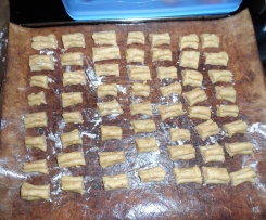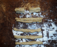 Den Teig auf einer bemehlten Backfolie zu bleistiftgroßen
