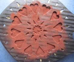 Eine Schablone auflegen und Kakaopulver zur Verzierung darüber sieben.