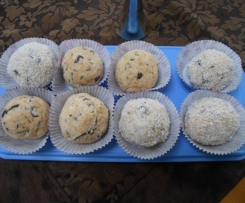 Setzen Sie diese in kleine Papier-Muffinförmchen! Alternativ können die Bällchen noch paniert werden. Hierzu verwende ich sehr gerne Kokosraspeln. Die Bällchen kurz darin wälzen und dann ins Förmchen setzen.