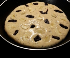 Die beschichtete Pfanne schön heiß werden lassen und mit dem Kokosfett die Pfannekuchen drin backen.Bevor gewendet wird mit Obst jeglicher Art belegen, aber bitte nicht ganz feuchtes(nasses) Obst nehmen.Danke