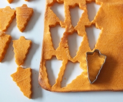 Aus dem orangefarbenen Teig "Karotten" ausstechen (ich habe dazu einen Ausstecher eines Tannenbaumes umgedreht verwendet