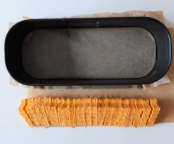 Jeweils ca 1/4 des Teiges rechts und links der Karottenreihe verteilen.