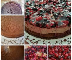 Anschließend die gefrorenen Frücht auf die Mousse geben und eine Tortenguß im Mixtopf nach Packungsangabe kochen. Ich habe es für 5 Min./100°C/Stufe 2 gekocht.