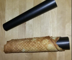 Dann sollte aber eher eine Schalen- oder Tüttenform geformt werden. Als Auslaufschutz kann die Spitze der Waffeltüte mit Schockolade geschlossen werden