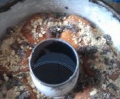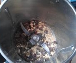 Nüsse (ich habe Cashew-Nüsse benutzt) ca. 3 Sec./Stufe 4-5 hacken, Rosinen zufügen und kurz auf Stufe 3 unterrühren.