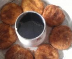 Zimt und Zucker in einem Suppenteller vermengen.