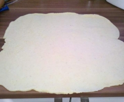 Hefeteig zu einer rechteckigen Platte 40x30cm ausrollen