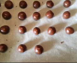 3. 4. Mit einem Kochlöffel kleine Mulden in die Bällchen drücken.