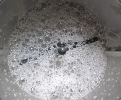 "Mixtopf geschlossen" und den Rühraufsatz spülen: Den Rühraufsatz wieder einsetzen. Heißes Wasser und etwas Spülmittel in den