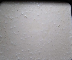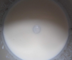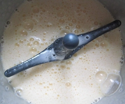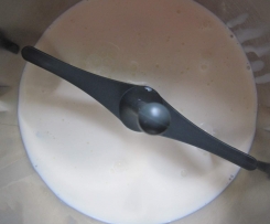 "Mixtopf geschlossen" auf St. 3 laufen lassen. Den Joghurt durch die Deckelöffnung zugeben und so mit der Gelatine-Milch vermischen.