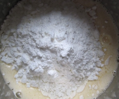 Rühraufsatz entfernen und Mehl, Speisestärke und Backpulver hinzufügen.