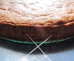 Den Boden abkühlen lassen und rundherum mit einem Messer etwas einschneiden, ca. einen halben bis einen Zentimeter von oben. In diese Kerbe einen Faden legen und vor dem Boden überkreuzen. An den Fadenenden ziehen und so den Boden durchschneiden. (Ich habe hier auf dem Foto eine zu dicke Platte abgeschnitten ....).