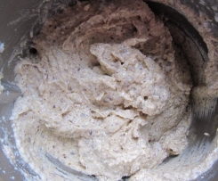 Mehl, Backpulver, gemahlene Nüsse und zerkleinerte Schokolade hinzufügen und 10 Sek. / St. 4 mithilfe des Spatels unterrühren.