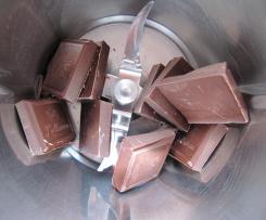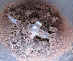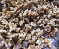 - Die Walnusskerne in der Tüte zerdrücken bzw. von Hand grob zerkleinern und zu der Schokolade geben. Das kann man natürlich auch im