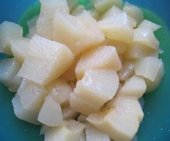 - frisches Obst oder Dosenobst in mundgerechten Stücken nach Geschmack (ich hatte eine Dose Birnen, 455 g Abtropfgewicht)