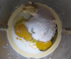 - Eier, Milch, Zucker, Vanillezucker und Salz hinzufügen ......