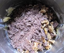 - Zerkleinerte Schokolade und Walnüsse ebenfalls in den