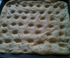 Ich habe den Teig 1 Stunde gehen lassen und dann nochmal 2 Stunden auf dem Blech, da das Mittagessen dazwischen kam. Dadurch ist er noch fluffiger geworden denke ich und war ca. 2-3 cm hoch