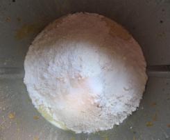 - Mehl, Backpulver, Natron und Salz in den Mixtopf wiegen und 5 Sek./Stufe 3-4 unterrühren.